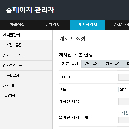 관리자모드 좌측 소메뉴 정보