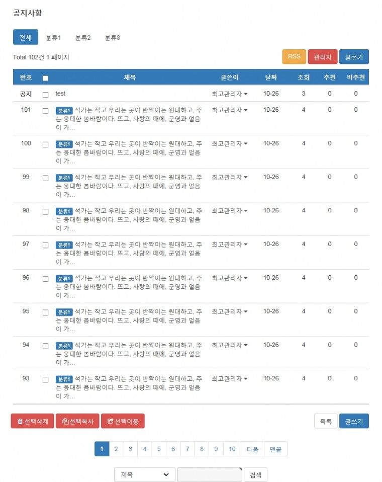 그리고 가장 시간을 많이 드린 게시판 베이직이 포함 되어 있습니다.