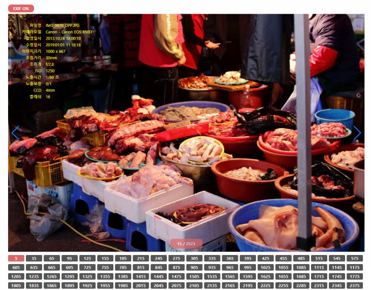 카메라로 촬영된 이미지의 경우 촬영정보인 Exif 정보도 함께 표시해줍니다. (on/off 가능)