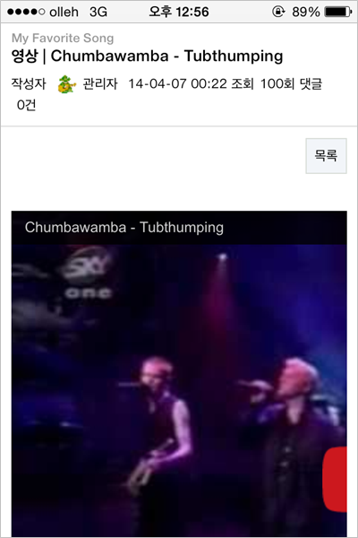 PC판에 사용하기 위해서 YouTube에서 width="640" 소스를 복사하면... height는 자동으로 "480"이 됩니다만