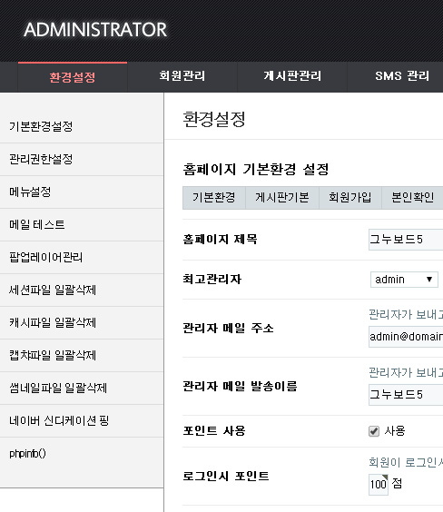 그누보드5 관리자 소메뉴 좌측에 붙이기 정보