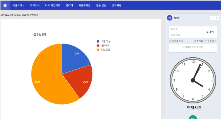 그누보드5에 구글챠트를 이용해서 간단한 그래프를 넣는 방법입니다.
