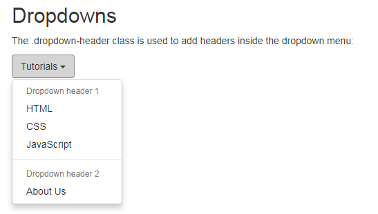 이 .dropdown-header클래스는 드롭 다운 메뉴에 헤더를 추가하는 데 사용됩니다.