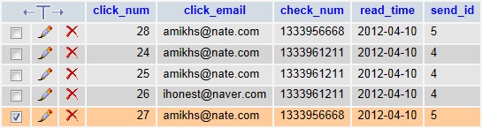 click_email 과 send_id 에 유니크키 로 입혀주시고