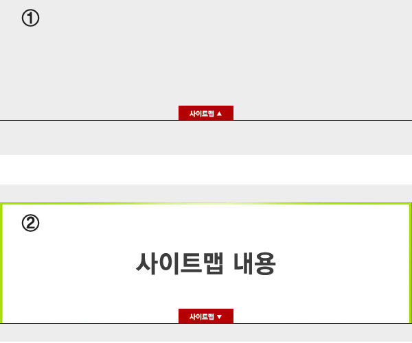 위의 그림 1, 2 와 같이 1에서 누르면 2처럼 펼쳐졌다가 2버튼을 다시 누르면 1번 처럼 접히는 형태입니다.