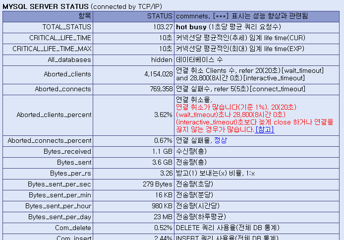 MySQL 상태보기 (MySQL튜닝하기) > 개발자팁