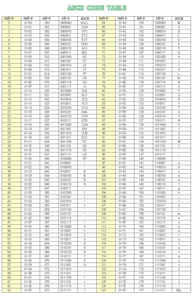 ASCIIcode표 정보 ASCIIcode표 휘날리며 자기소개 아이디로 검색 회원게시물 자기소개 아이디로 검색 회원게시물 2008.03.11 15:35:19 조회 2,717 댓글 1 첨부파일 ASCIIcode표.jpg (498.3K) 7회 다운로드 2008-03-11 15:35:19 이전 게시글 다음 게시글 목록 본문 교육용으로 쓰세요 ASCIIcode는 이런것이다 추천 0 댓글 1개 정환이 자기소개 아이디로 검색 회원게시물 자기소개 아이디로 검색 회원게시물 08.08.08 15:52:38 http://asciitable.com 댓글 설정 댓글 신고 http://asciitable.com 이전 게시글 다음 게시글 목록