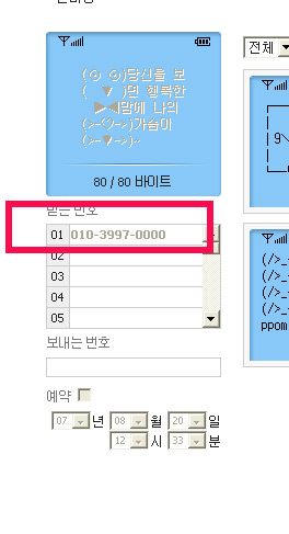 그림첨부처럼 받는 사람의 전번이 노출됩니다.