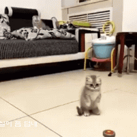 엄청 빠른 강아지를 본 아기 고양이들 반응