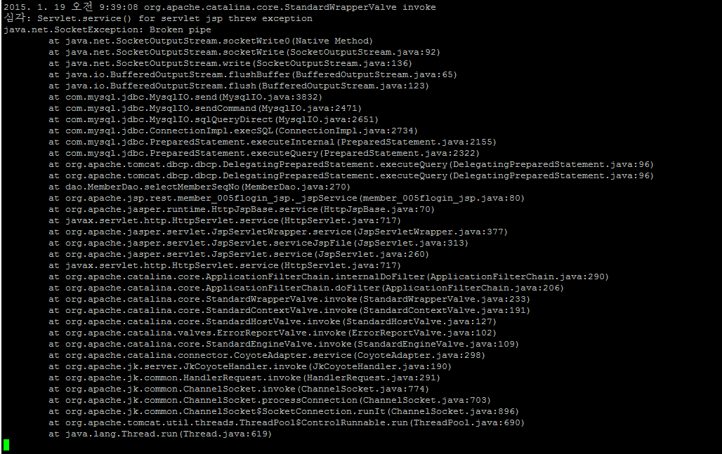 자바에러 문의 입니다. java.net.SocketException : Broken pipe 정보
